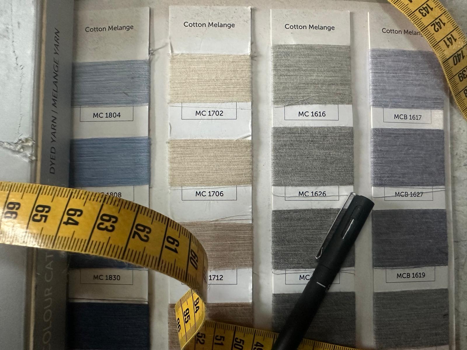 Grey mélange is built at the yarn stage. Instead of dyeing the fabric after knitting, textile mills dye the cotton while it’s still loose fiber.